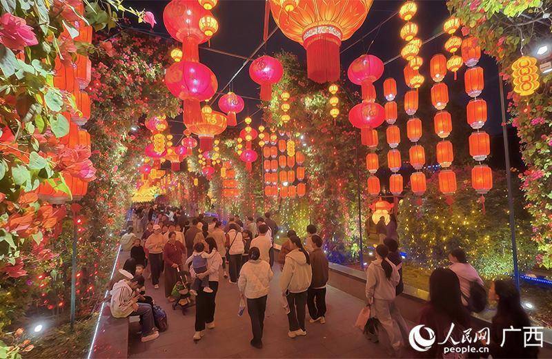 八匹骏马踏光奔腾,传统彩灯解锁赛博新装,自然精灵拥抱浪漫光海……夜幕低垂,南宁市青秀山披上一袭流光织就的梦幻华裳。游人三五成群,欢声笑语此起彼伏,穿梭于璀璨灯海之中,俨然一幅喜乐祥和、年味升腾的新春图景。