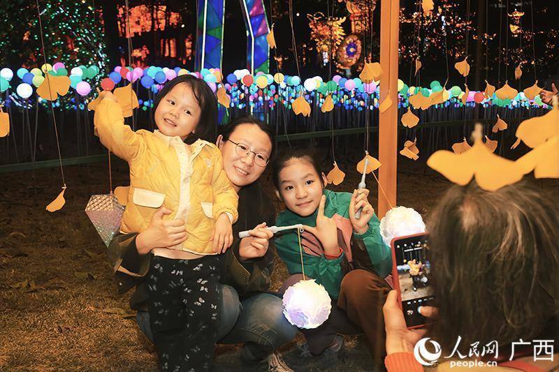 一家人赏灯并合影留念。人民网 韦欢摄